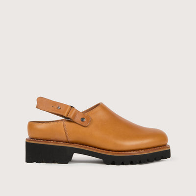 Sabot femme en cuir lisse marron clair et semelle gomme